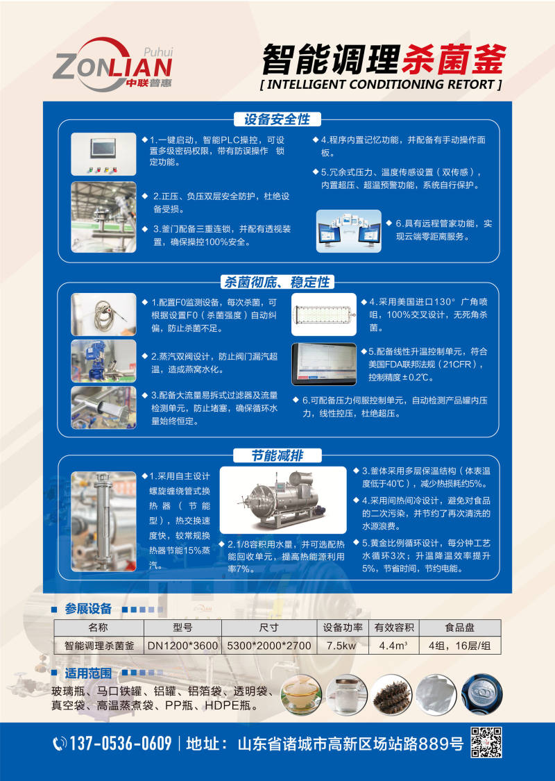山东中联普惠智能装备有限公司是一家以技术为核心,以自动化智能生产线带动杀菌设备,为您提供从前期设计规划到后期整线交付使用的一站式供应商;是一家集原材料供应、产品研发、工艺设计、生产制造、成品检验、工程运输、售后服务于一体的公司。