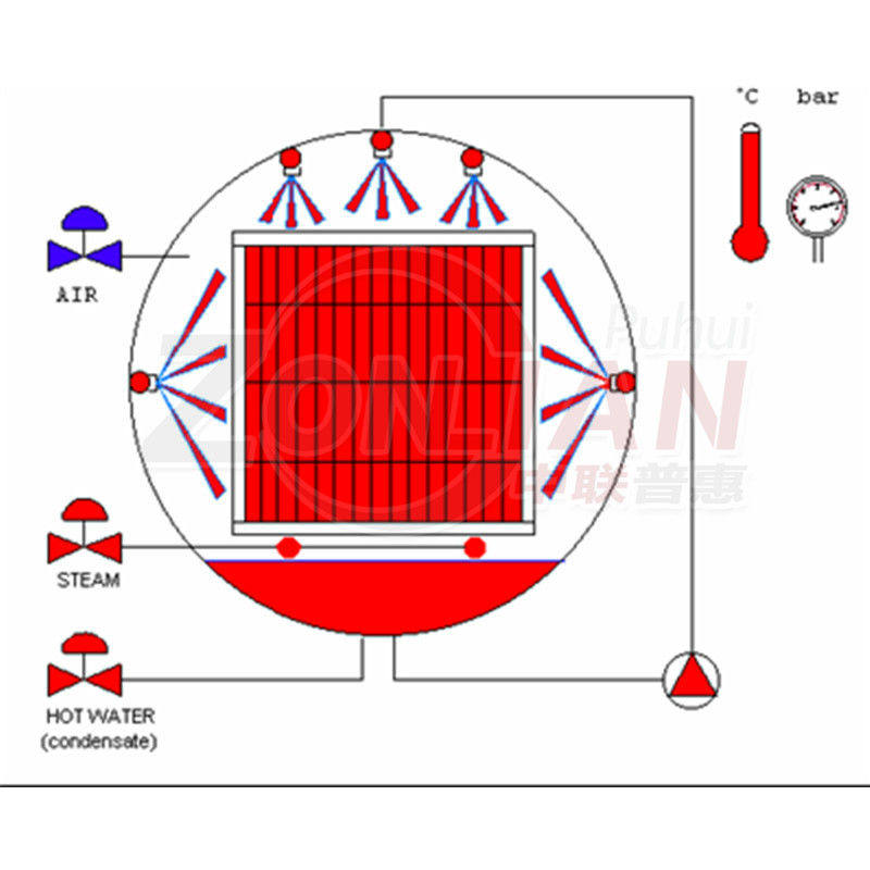 3. 一键式操作,当产品进入杀菌釜并关闭釜门后,按下杀菌键即完成整个杀菌过程;